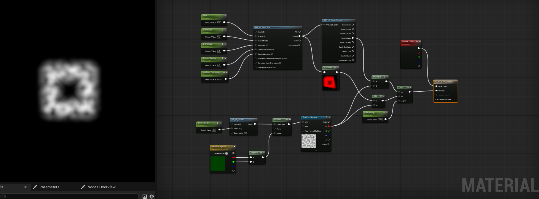 Unreal exploration of animation design; also taking the opportunity to learn more about player character blueprints.Various materials I've been prototyping for the UI