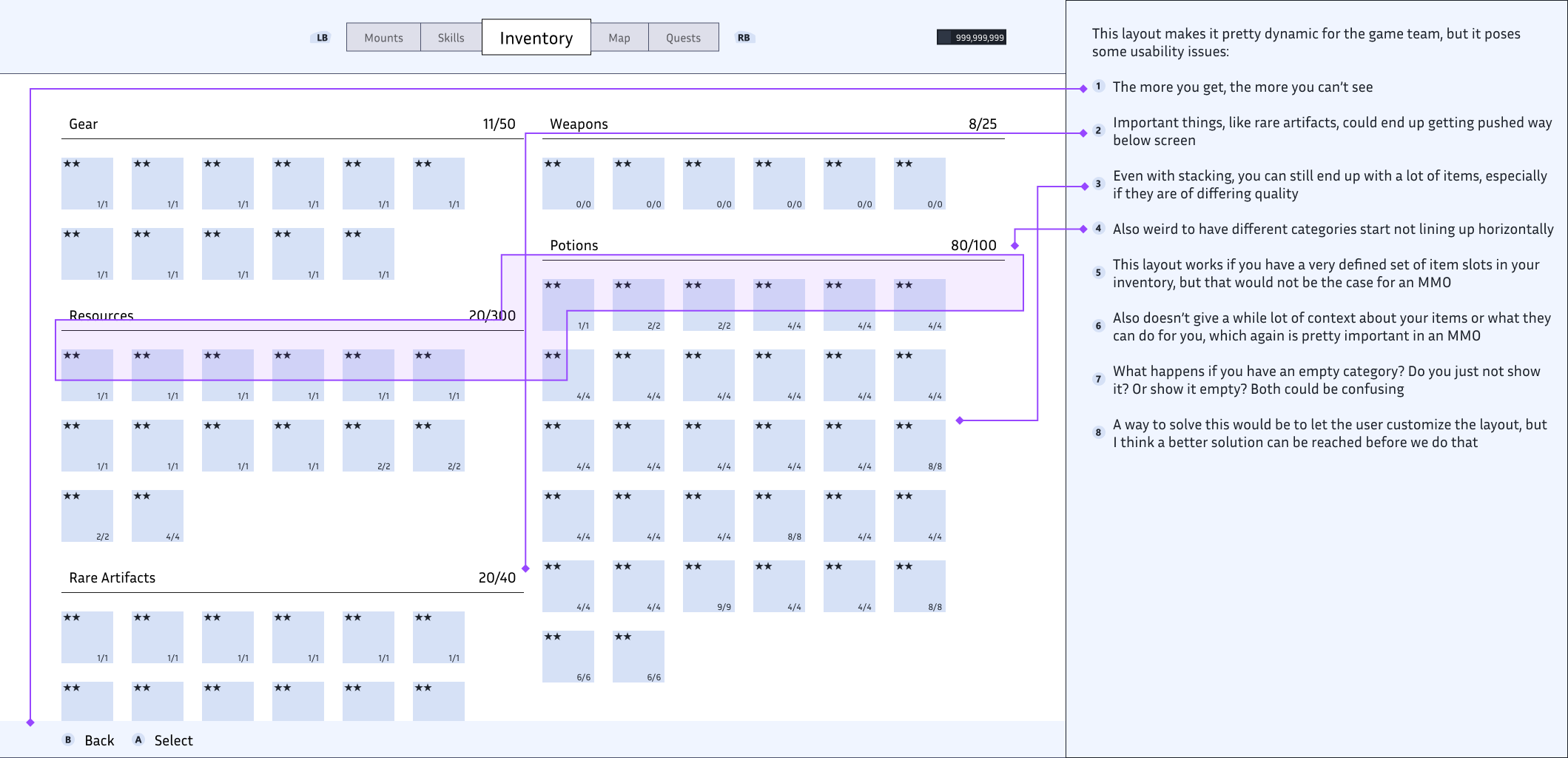 Requirements: Inventory Grid for a PC and Console layout (including all items from an open world play screen like equipped items, item slots, etc)